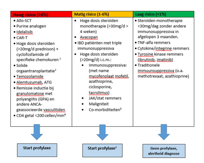 Onderstaande tabel geeft een overzicht van de indicaties voor PJP profylaxe.